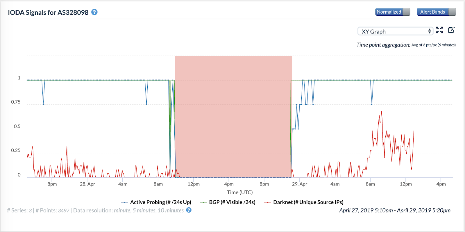 Figure 17: Internet Outage Detection and Analysis (IODA), AS328098