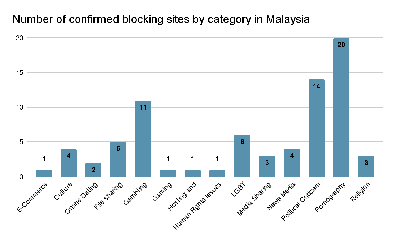 In this report, focus will be made on the confirmed blocked websites under Political Criticism, News Media and LGBT categories to explore what was blocked in Malaysia during the coverage period.
